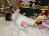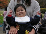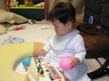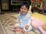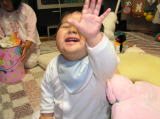 | 意識してやっているわけじゃないんだろうけど、 2本指をたてて『ピース』をするようになりました あと、目が合ったりすると手で『おいでおいで』 をするようになりました どちらも教えたわけじゃないんだけど 勝手に覚えたみたいです 表情も豊かになったし、愛想もいいし、 カメラを向けるとニコニコするし、 ますますかわいくなりました |